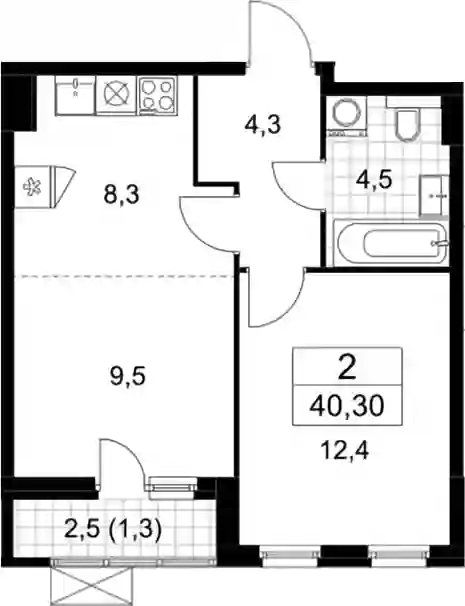 11 826 630 ₽2-к.квартира, 38.5 м², 8 эт.