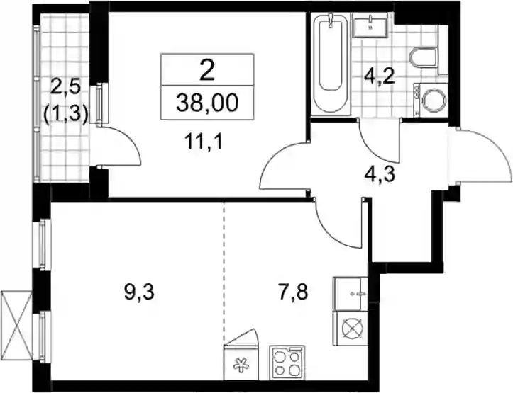 13 462 048 ₽2-к.квартира, 37.8 м², 15 эт.