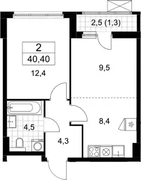 2-к.квартира, 39.1 м², 9 эт. в ЖК Бунинские кварталы Корпус 7.3