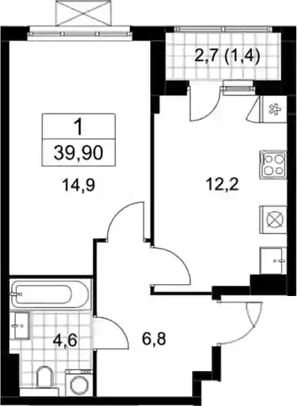 10 600 968 ₽1-к.квартира, 34.7 м², 15 эт.
