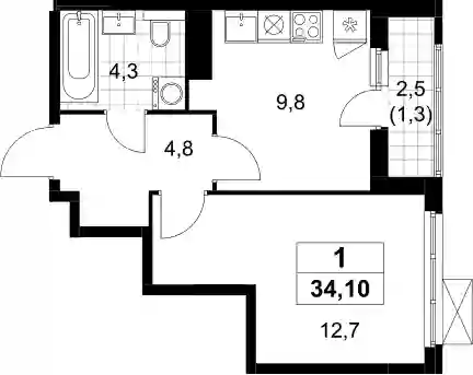 10 600 968 ₽1-к.квартира, 34.7 м², 15 эт.