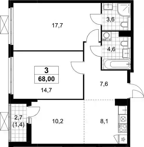 17 581 408 ₽3-к.квартира, 66.3 м², 2 эт.