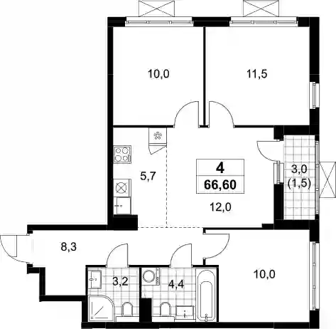 17 581 408 ₽3-к.квартира, 66.3 м², 2 эт.