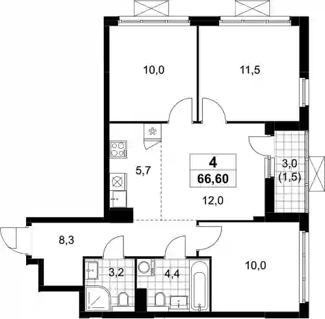 17 581 408 ₽3-к.квартира, 66.3 м², 2 эт.