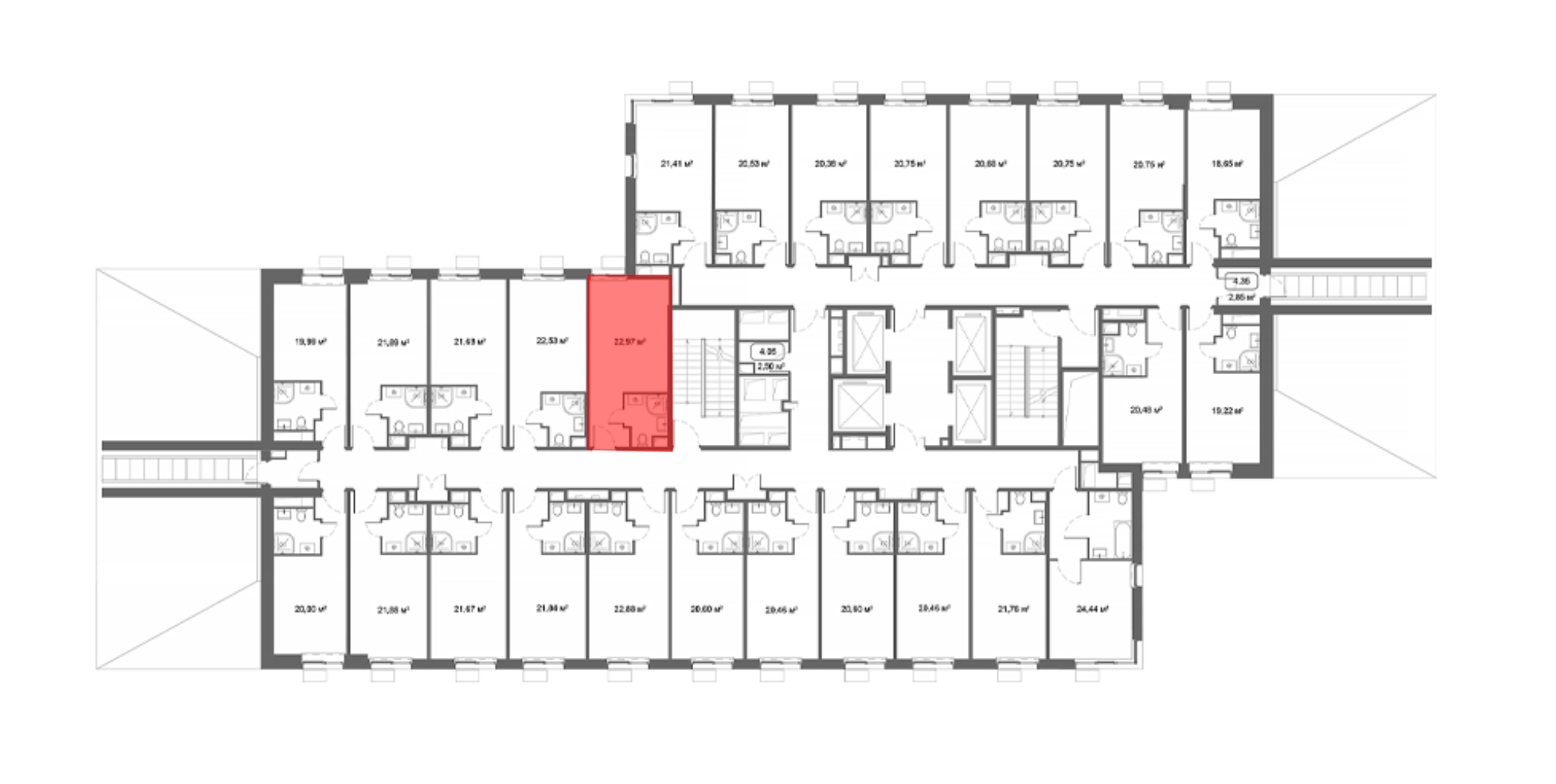 В проекте предложены студии площадью от 20 до 25 кв. метров с чистовой отделкой в сером или бежевом тоне или отделкой White Box.