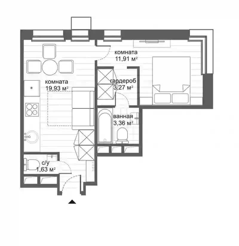 В проекте предложены однокомнатные и двухкомнатные апартаменты площадью от 20 до 45 кв. метров. Есть лоты с эркерами, угловым остеклением и окном в ванной. Все апартаменты сдаются с чистовой отделкой в бежевом или сером тоне.