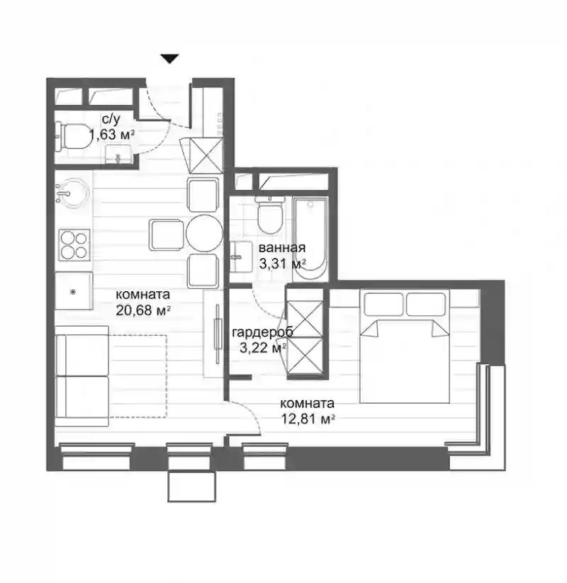 В проекте предложены однокомнатные и двухкомнатные апартаменты площадью от 20 до 45 кв. метров. Есть лоты с эркерами, угловым остеклением и окном в ванной. Все апартаменты сдаются с чистовой отделкой в бежевом или сером тоне.