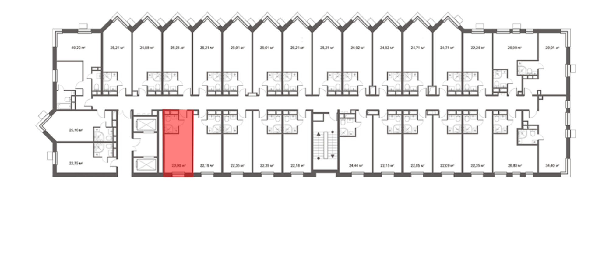 В проекте предложены однокомнатные и двухкомнатные апартаменты площадью от 20 до 45 кв. метров. Есть лоты с эркерами, угловым остеклением и окном в ванной. Все апартаменты сдаются с чистовой отделкой в бежевом или сером тоне.