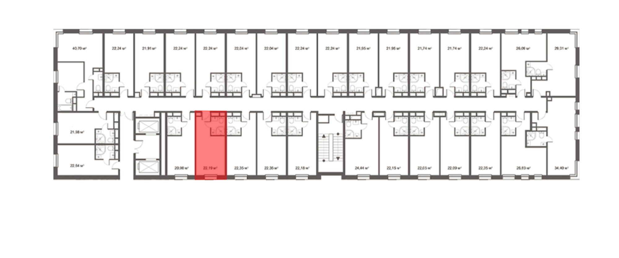 В проекте предложены однокомнатные и двухкомнатные апартаменты площадью от 20 до 45 кв. метров. Есть лоты с эркерами, угловым остеклением и окном в ванной. Все апартаменты сдаются с чистовой отделкой в бежевом или сером тоне.