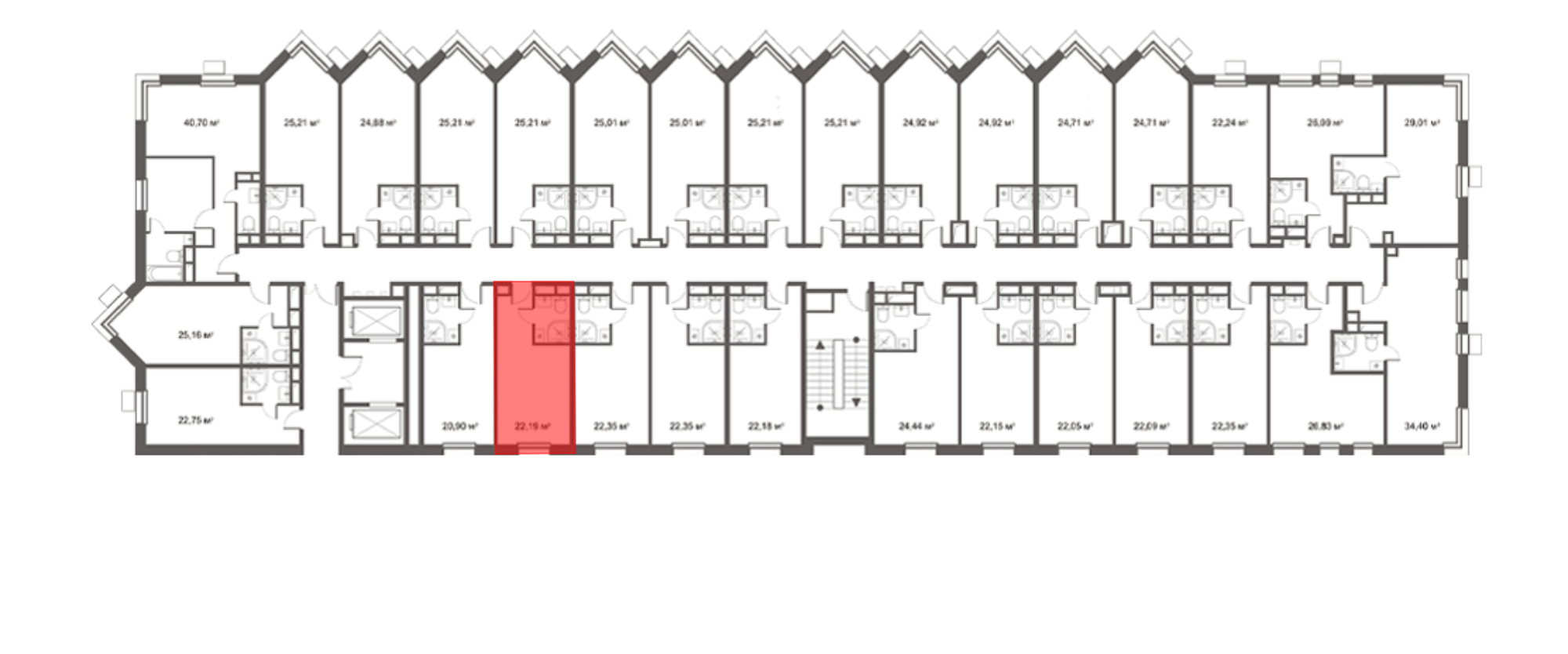 В проекте предложены однокомнатные и двухкомнатные апартаменты площадью от 20 до 45 кв. метров. Есть лоты с эркерами, угловым остеклением и окном в ванной. Все апартаменты сдаются с чистовой отделкой в бежевом или сером тоне.
