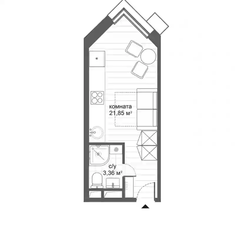 В проекте предложены однокомнатные и двухкомнатные апартаменты площадью от 20 до 45 кв. метров. Есть лоты с эркерами, угловым остеклением и окном в ванной. Все апартаменты сдаются с чистовой отделкой в бежевом или сером тоне.
