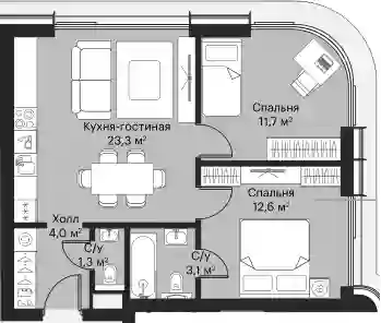 23 186 190 ₽3-к.квартира, 57.12 м², 15 эт.