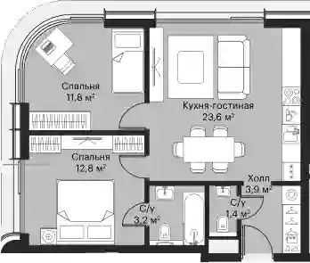 23 218 209 ₽3-к.квартира, 53.1 м², 8 эт.