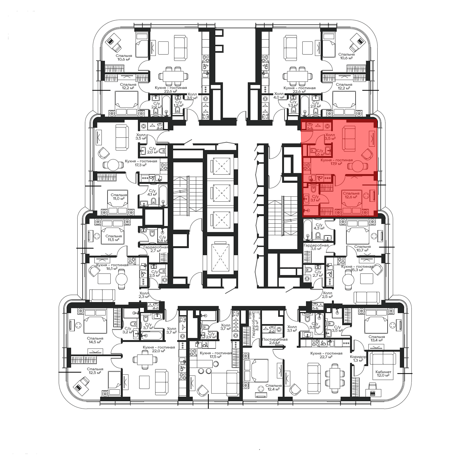 22 606 628 ₽2-к.квартира, 43.2 м², 22 эт.