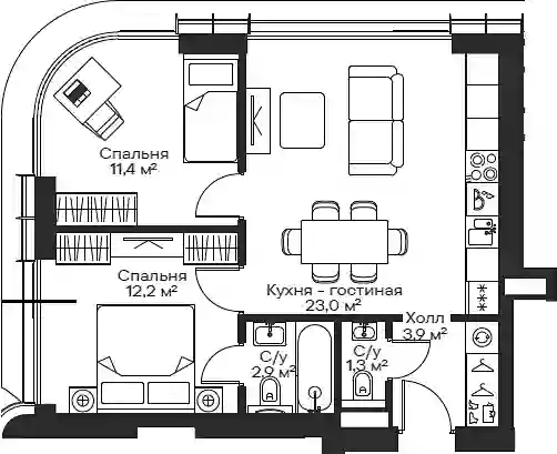 В комплексе предложено множество планировочных решений: в наличии квартиры, как классического типа, так и европланировки. Квартиры сдаются с подчистовой отделкой, высотой потолков 3 м и панорамным остеклением в пол.