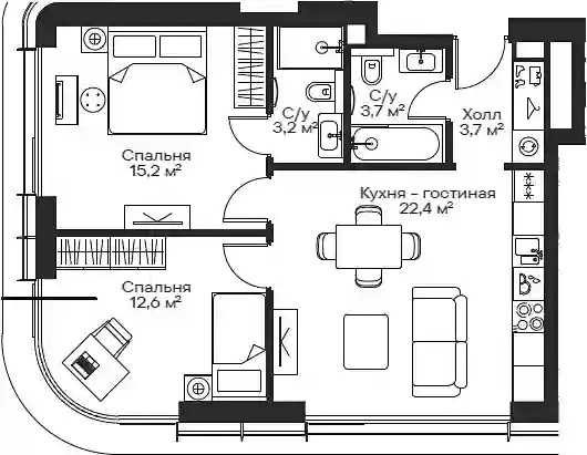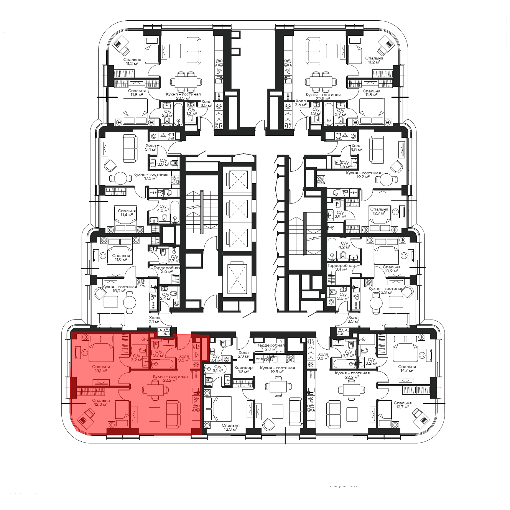 22 606 628 ₽2-к.квартира, 43.2 м², 22 эт.