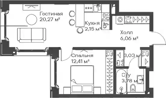 26 695 674 ₽2-к.квартира, 49.14 м², 6 эт.
