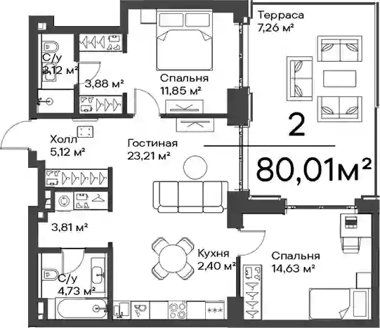 33 183 104 ₽3-к.квартира, 73.16 м², 2 эт.