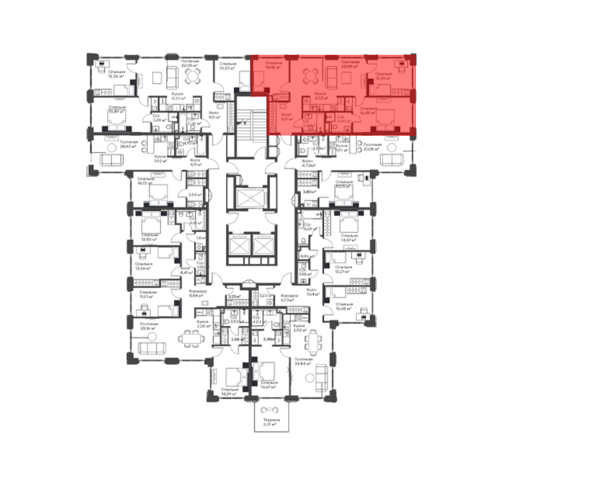 Планировочные решения включают как классические форматы, так и европланировки. Квартиры сдаются без отделки, с потолками высотой 3,1 метра и увеличенной площадью остекления. В некоторых квартирах предусмотрены просторные террасы.