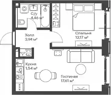 17 390 822 ₽2-к.квартира, 43.11 м², 41 эт.