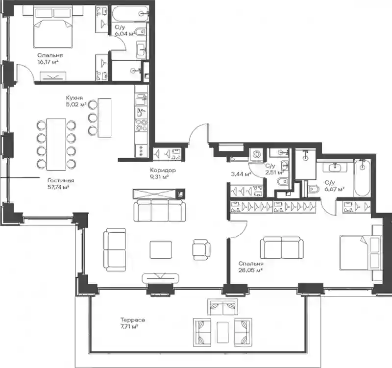 В комплексе предложено множество планировочных решений: в наличии квартиры, как классического типа, так и европланировки. Квартиры сдаются с подчистовой отделкой, высотой потолков 3 м и панорамным остеклением в пол.