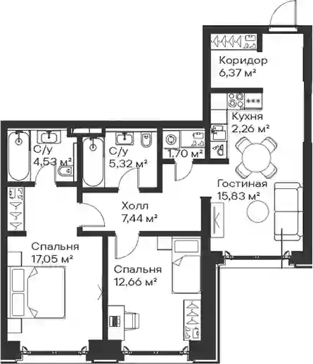 32 466 833 ₽3-к.квартира, 67.4 м², 47 эт.