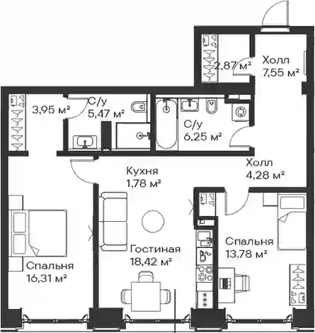 В комплексе предложено множество планировочных решений: в наличии квартиры, как классического типа, так и европланировки. Квартиры сдаются с подчистовой отделкой, высотой потолков 3 м и панорамным остеклением в пол.