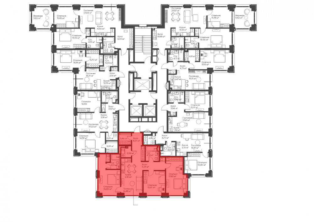 В комплексе предложено множество планировочных решений: в наличии квартиры, как классического типа, так и европланировки. Квартиры сдаются с подчистовой отделкой, высотой потолков 3 м и панорамным остеклением в пол.