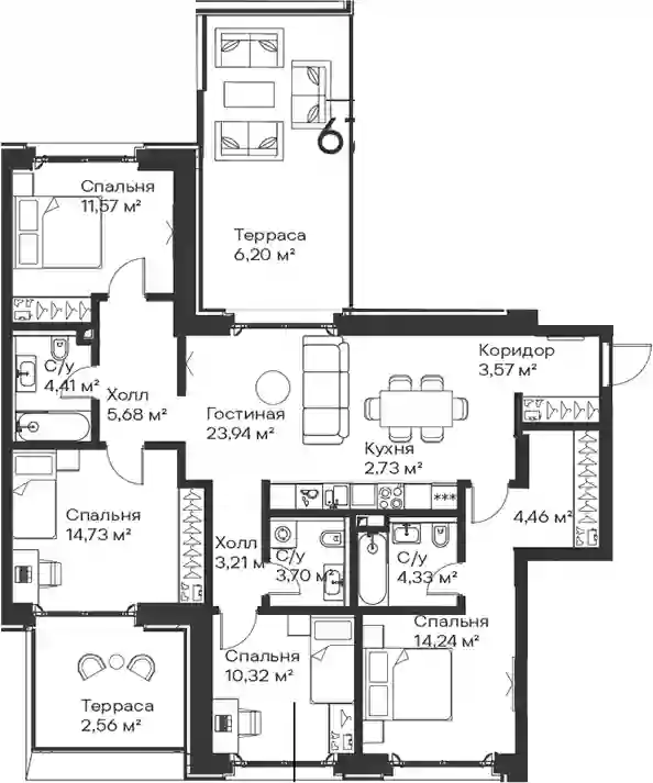 73 792 641 ₽5+к.квартира, 98.52 м², 15 эт.