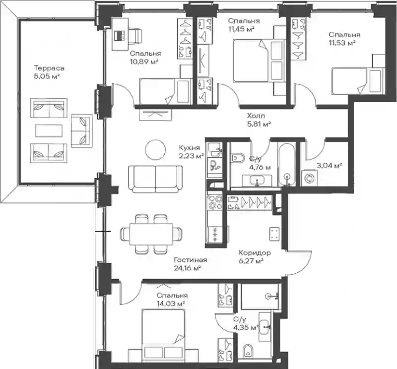 53 537 951 ₽4-к.квартира, 95.4 м², 14 эт.
