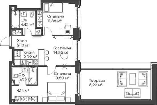 В комплексе предложен широкий выбор планировочных решений: от компактных студий площадью 22 кв. метра до просторных резиденций площадью 120 кв. метров. Планировками предусмотрены мастер-спальни с гардеробной и санузлом, просторные кухни-гостиные, гардеробные и системы хранения, выделенные рабочие зоны в спальнях и террасы с панорамным видом на город. Во всех квартирах панорамные окна и высокие потолки от 2,85 метра. Квартиры сдаются с отделкой White box.
