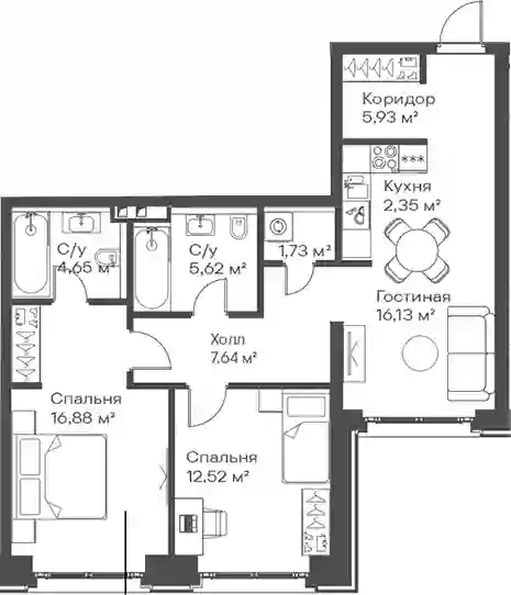 37 029 375 ₽3-к.квартира, 68.1 м², 16 эт.