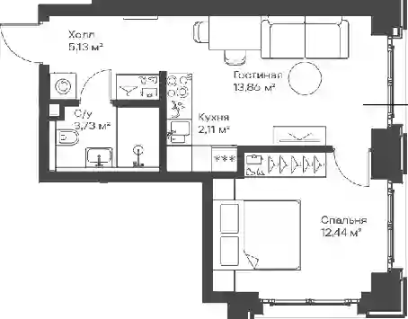 22 637 376 ₽2-к.квартира, 40.64 м², 2 эт.