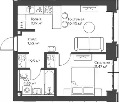 19 211 209 ₽2-к.квартира, 40.87 м², 9 эт.