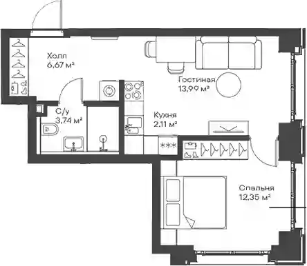 23 300 978 ₽2-к.квартира, 38.92 м², 6 эт.
