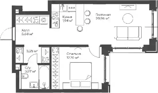 24 763 050 ₽2-к.квартира, 44.2 м², 35 эт.