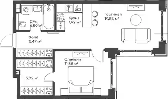 26 429 271 ₽2-к.квартира, 49.07 м², 5 эт.