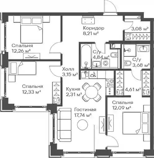 37 801 710 ₽4-к.квартира, 78.5 м², 21 эт.