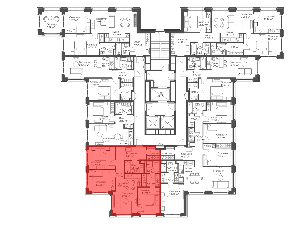 Квартир в ЖК: 74