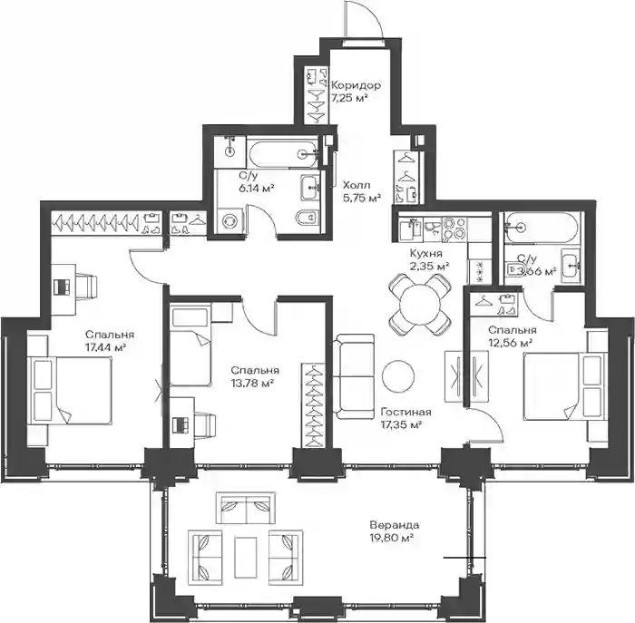 В комплексе предложено множество планировочных решений: в наличии квартиры, как классического типа, так и европланировки. Квартиры сдаются с подчистовой отделкой, высотой потолков 3 м и панорамным остеклением в пол.
