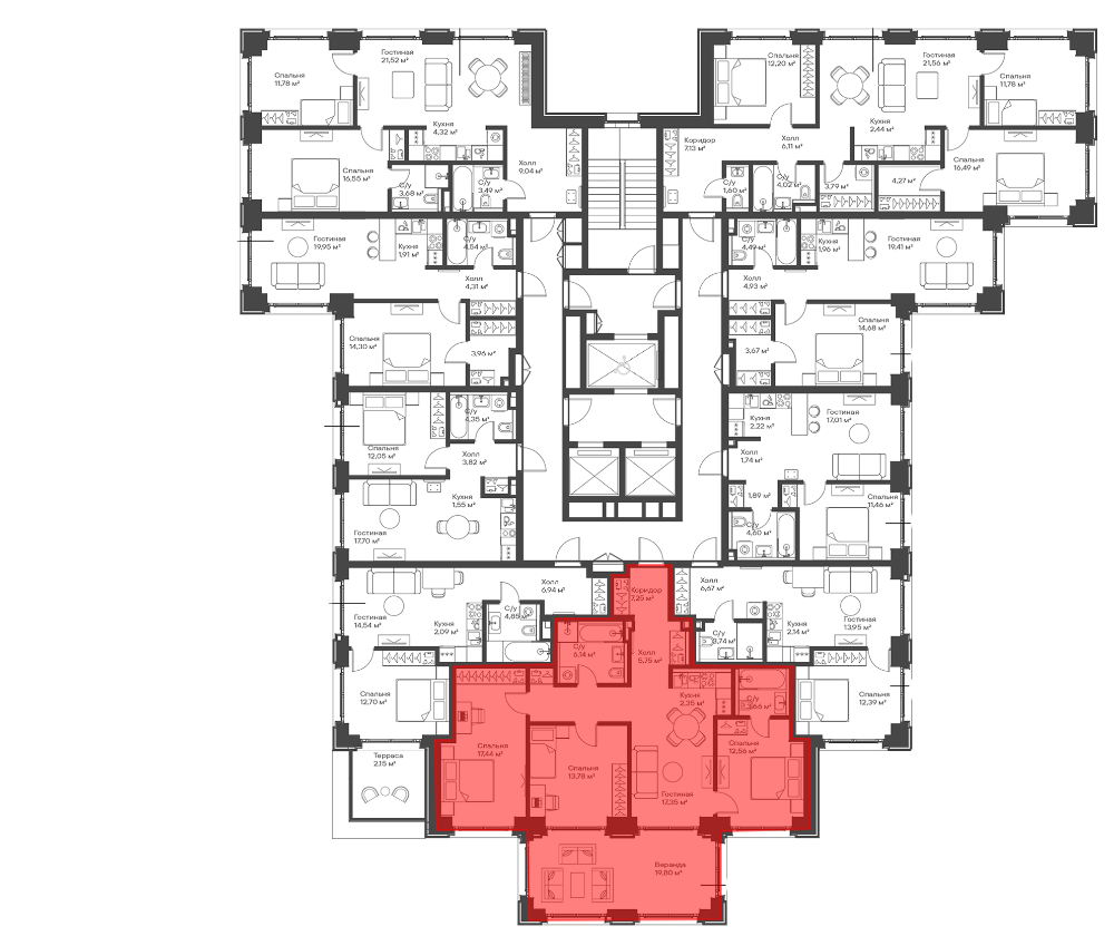 Квартир в ЖК: 198