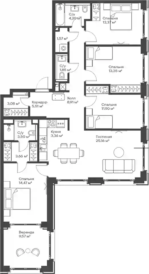 72 931 084 ₽5+к.квартира, 112.89 м², 12 эт.