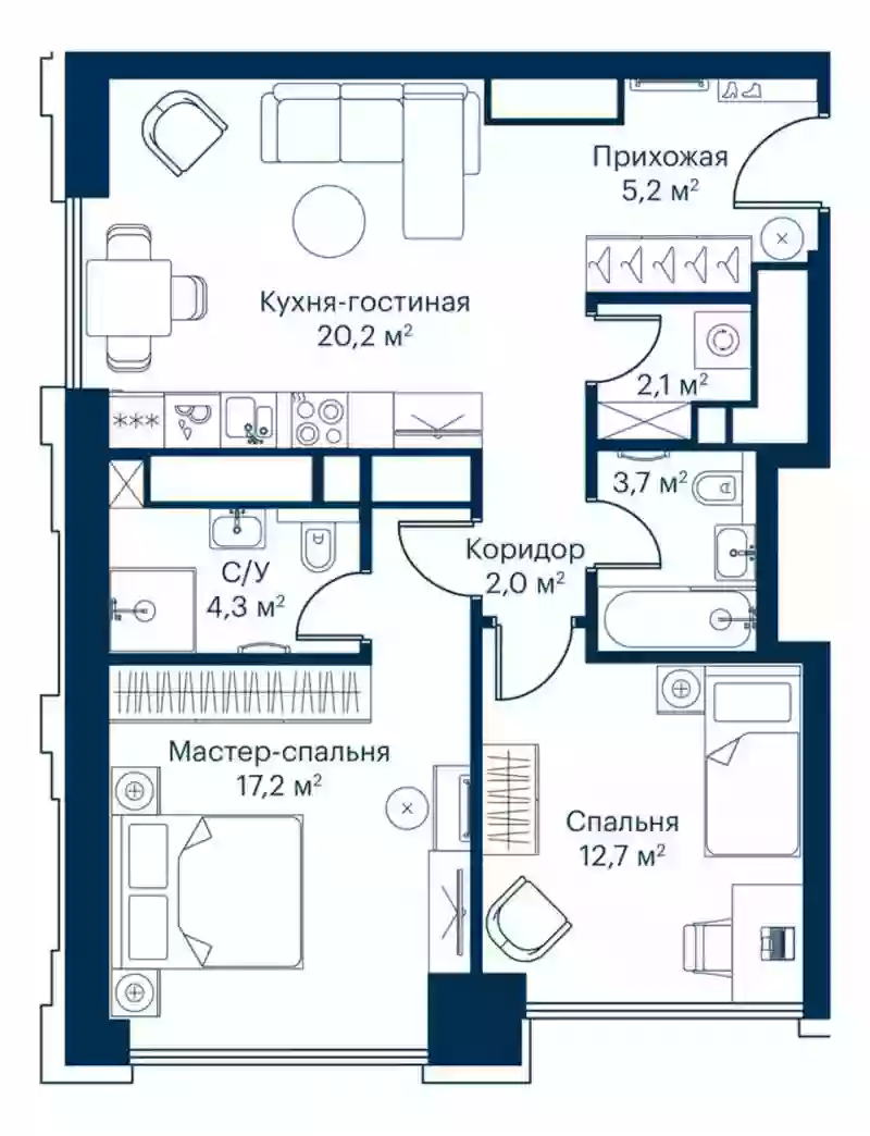 28 224 604 ₽3-к.квартира, 60.8 м², 20 эт.