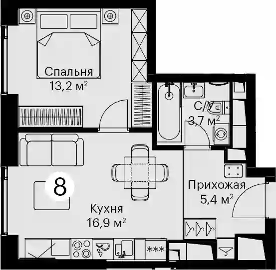20 312 314 ₽2-к.квартира, 39.3 м², 30 эт.