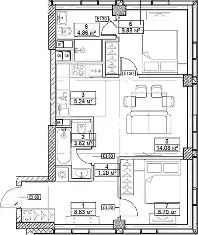 23 854 049 ₽3-к.квартира, 61.8 м², 8 эт.