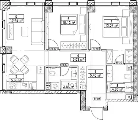 23 803 710 ₽3-к.квартира, 58.45 м², 13 эт.