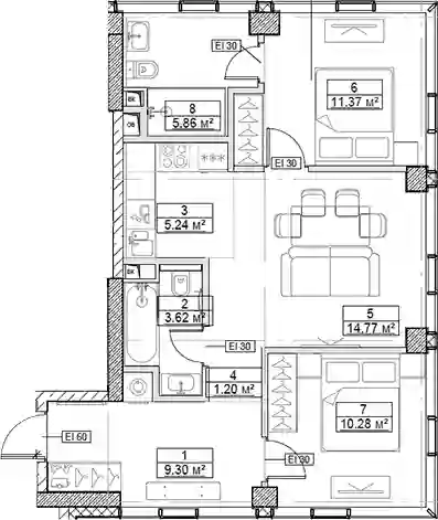 24 126 698 ₽3-к.квартира, 61.8 м², 8 эт.