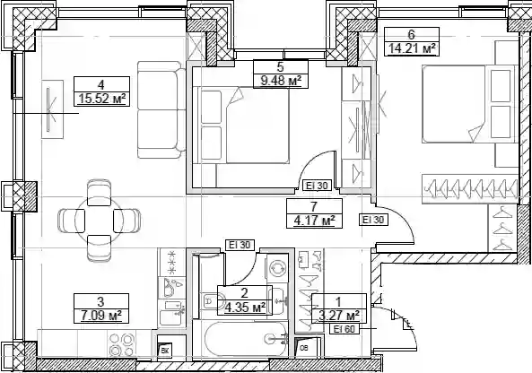 Квартиры в ЖК представлены классическими планировками от студий до трёхкомнатных. Есть возможность выбрать квартиру без отделки, с подчистовой и чистовой отделкой.