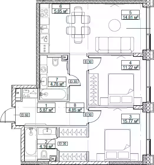 Квартиры в ЖК представлены классическими планировками от студий до трёхкомнатных. Есть возможность выбрать квартиру без отделки, с подчистовой и чистовой отделкой.