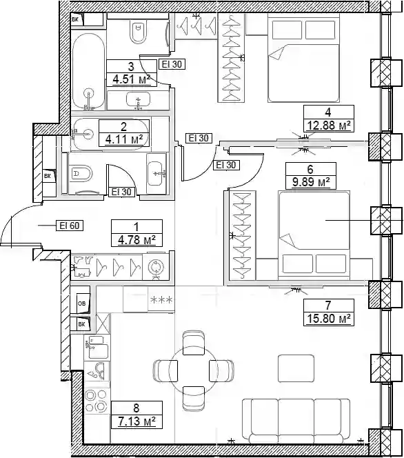 23 488 780 ₽3-к.квартира, 59.97 м², 8 эт.